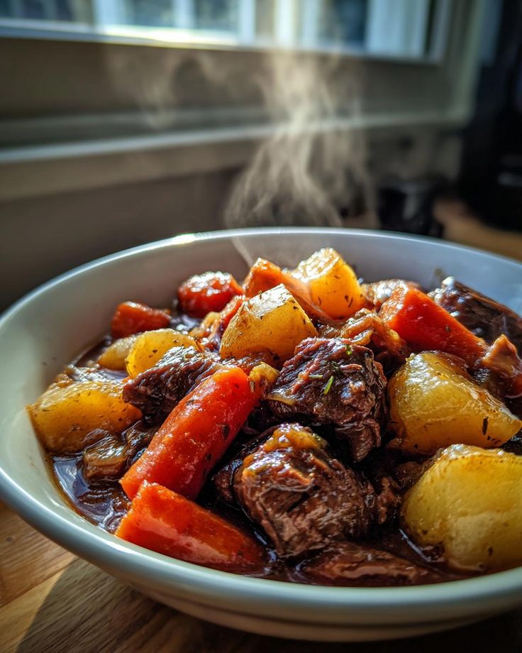 Hearty, cozy, and comforting.Ingredients: Beef chunks Potatoes Carrots Onion Garlic Broth