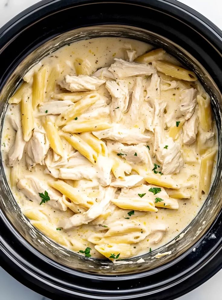 Crockpot Creamy Chicken Alfredo Ziti