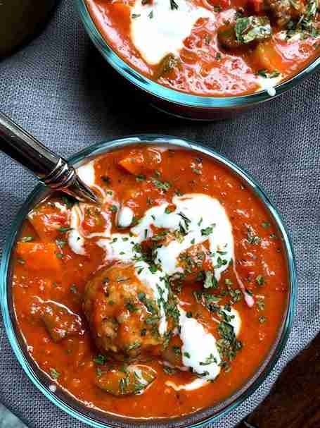 Creamy Tomato Basil Soup with Meatballs