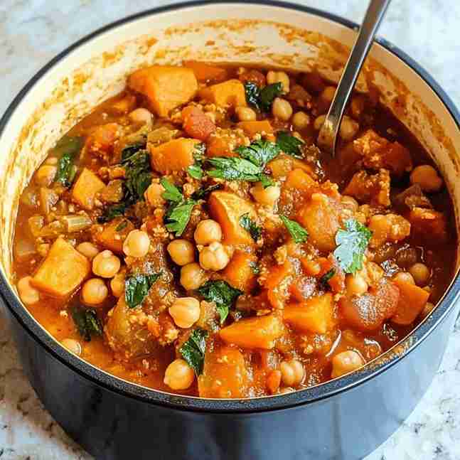 What I love most about this stew is the balance of flavors. The chickpeas become tender and creamy, while the warm Moroccan-inspired spices add depth without being overpowering. As it simmers, the sauce thickens into a rich, comforting stew that feels both wholesome and special.
