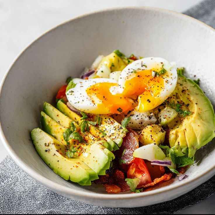 This egg and avocado snack bowl is creamy, filling, and packed with protein and healthy fats.