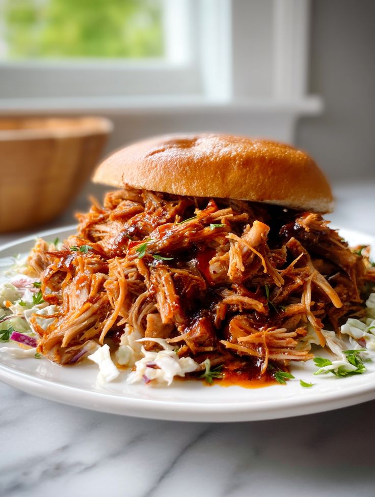 I usually serve this BBQ pulled pork on soft buns, over rice, or alongside coleslaw for an easy meal. It’s perfect for busy weeknights, gatherings, or meal prep, and it always disappears fast.