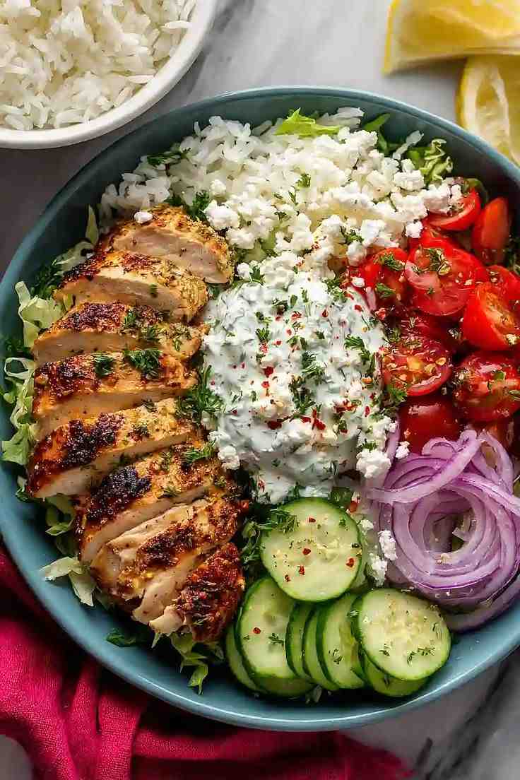 This bowl is bright and flavorful with simple Mediterranean ingredients that make meal prep feel exciting.
