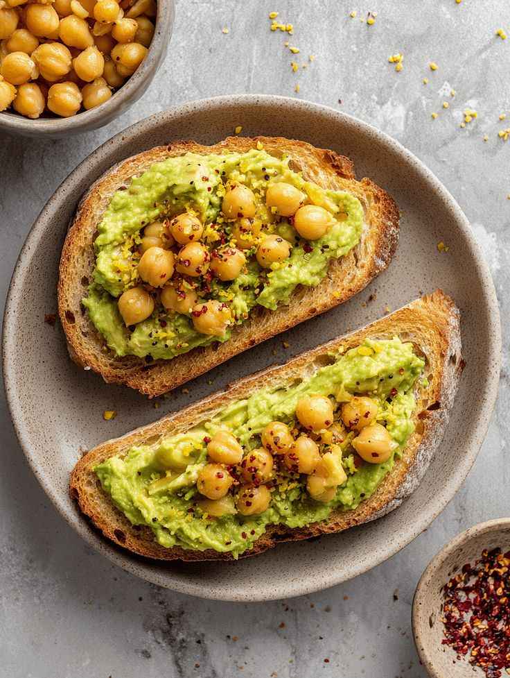 This avocado chickpea toast is one of those quick vegan lunches I love making when I want something simple, nourishing, and satisfying. It uses just a few basic ingredients but still feels fresh and filling. The creamy avocado pairs perfectly with mashed chickpeas, creating a soft and flavorful topping that works beautifully on warm toasted bread.